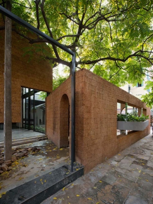 Tại khu đất có rất nhiều những dấu ấn lịch sử đối với người Hà Nội, bất cứ một công trình nào được xây dựng nên cũng làm cho người dân trong khu phố trở nên tò mò, thắc mắc và họ quan sát, họ chẳng hiểu chúng tôi đang xây dựng “cái gì?”. Rồi cuối cùng công trình cũng đã được xây dựng hoàn thiện, với sự kết hợp giữa những phần kiến trúc được thêm vào và những phần được cải tạo từ một phần đầu hồi công trình trụ sở cũ.Chúng tôi đưa ra những giải pháp thiết kế nhằm xóa nhòa ranh giới giữa không gian bên trong và bên ngoài công trình (trong – ngoài), giữa bên trên mái và dưới mặt đất (trên – dưới), giữa cái cũ và cái mới (cũ – mới), giữa yên tĩnh và ồn ào. Công trình được thiết kế và xây dựng bằng những vật liệu địa phương, truyền thống của vùng nhiệt đới. Mục đích của những giải pháp kiến trúc và xây dựng bằng vật liệu đó tạo ra những không gian tràn ngập Ánh sáng và Cảm xúc để con người tiếp xúc tối đa với thiên nhiên, với đất trời, tâm hồn được thanh lọc, chay tịnh...
